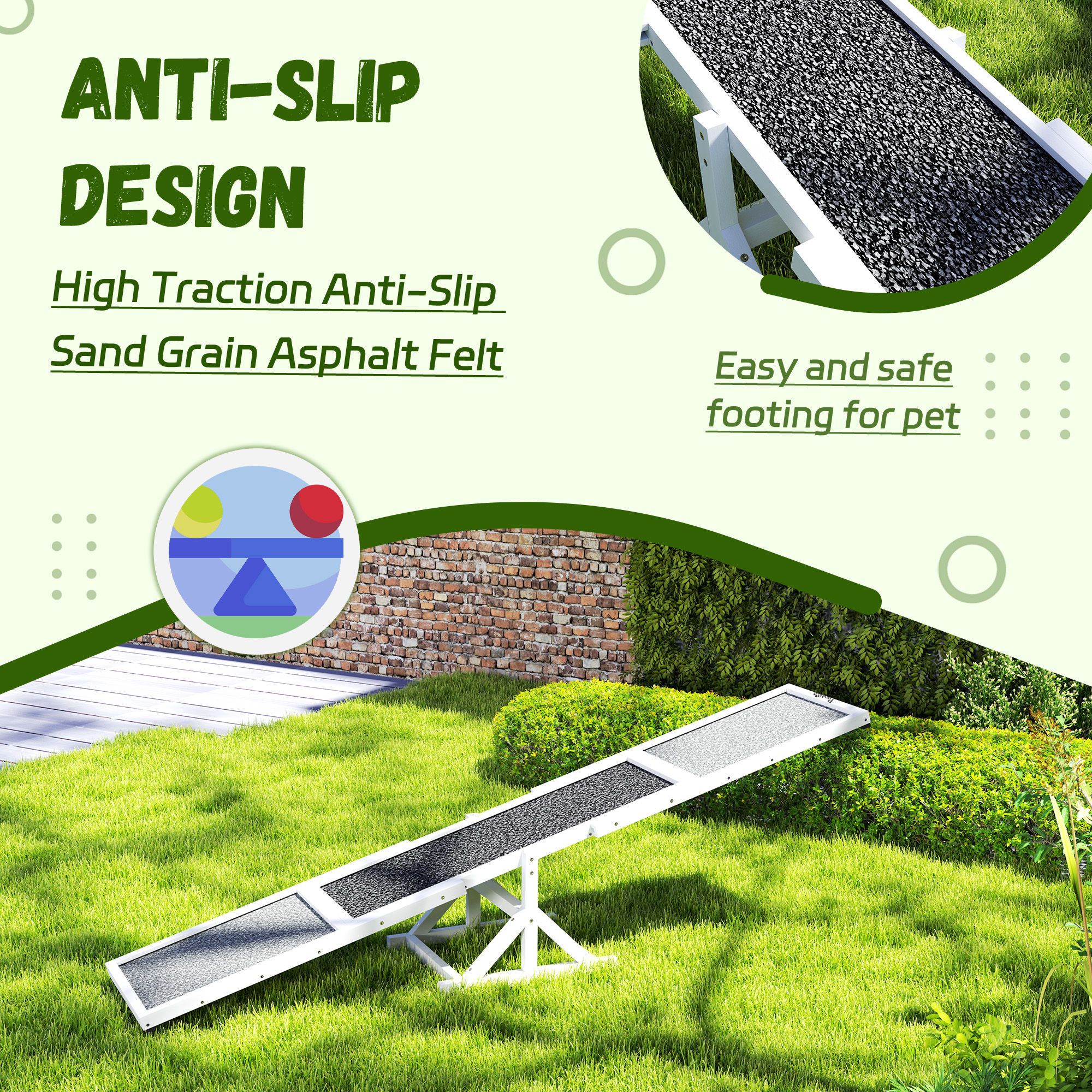 PawHut Wooden Dog Agility Seesaw for Training and Exercise, Weather Resistant, 83" L x 16" W x 14" H, White