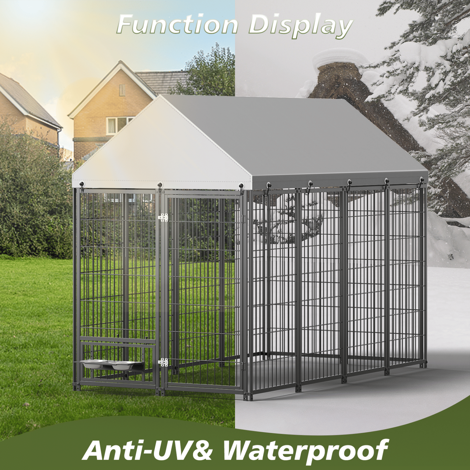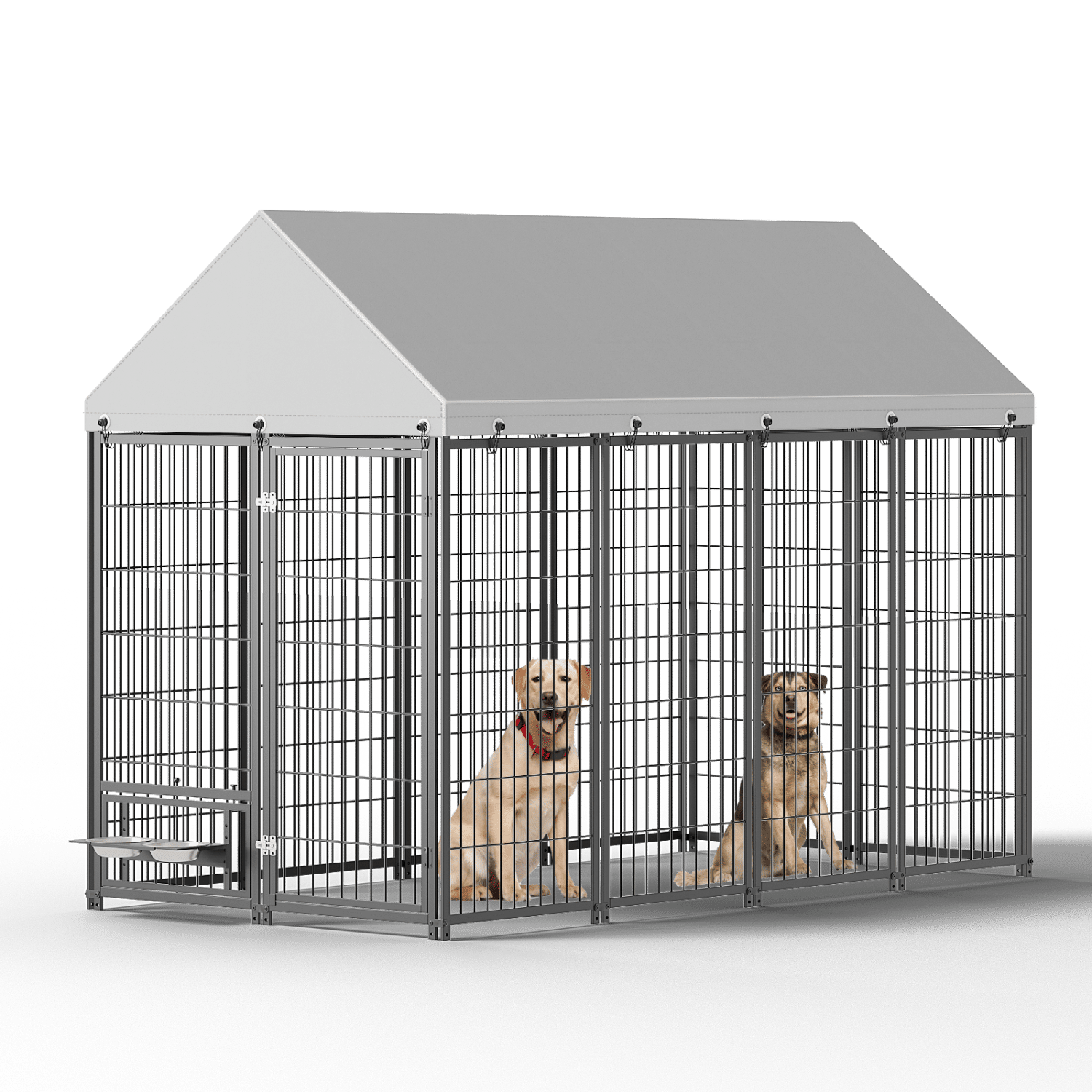 Large Dog Kennel Outdoor Pet Pens Dogs Run Enclosure Animal Hutch Metal Coop Fence with Roof Cover. 7.94'L x 4.13'W x 5.95'H.