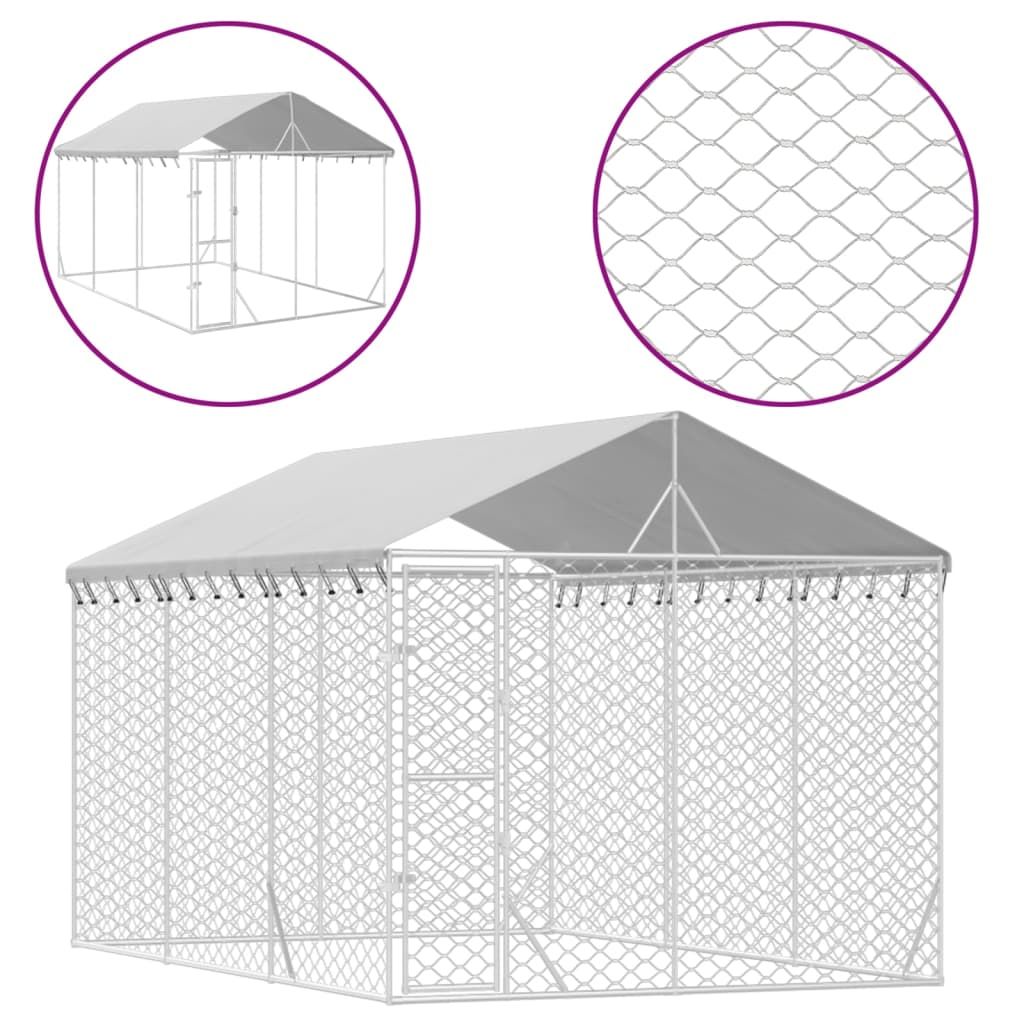 Outdoor Dog Kennel with Roof Silver 9.8'x14.8'x8.2' Galvanized Steel Outdoor Dog Kennel with Roof Silver 9.8'x14.8'x8.2' Galvanized Steel Outdoor Dog Kennel with Roof Silver 9.8'x14.8'x8.2' Galvanized Steel Outdoor Dog Kennel with Roof Silver 9.8'x14.8'x8.2' Galvanized Steel