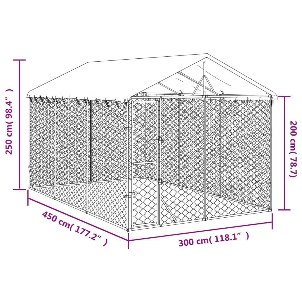 Outdoor Dog Kennel with Roof Silver 9.8'x14.8'x8.2' Galvanized Steel