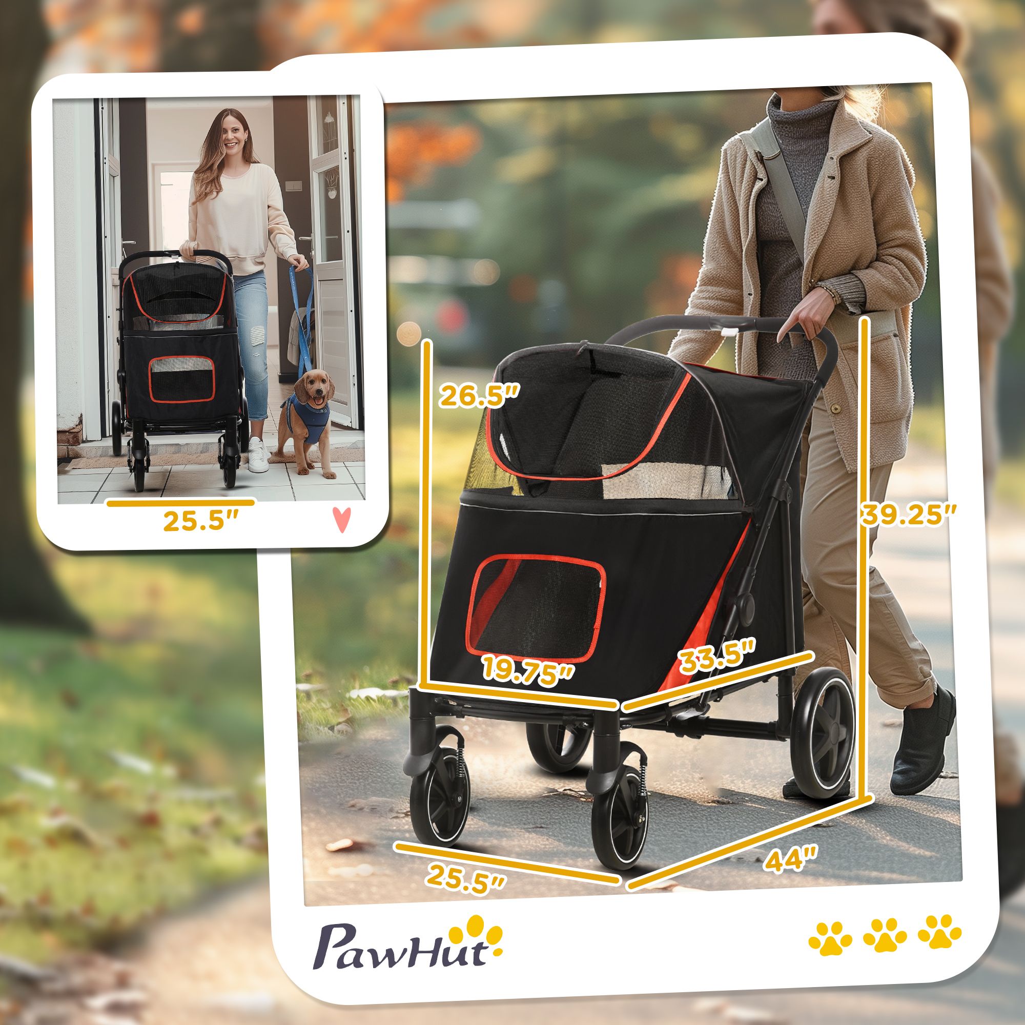 PawHut Foldable Doggy Stroller for Medium Large Dogs, Pet Stroller with Storage, Smooth Ride with Shock Absorption, Mesh Window & Safety Leash, Black