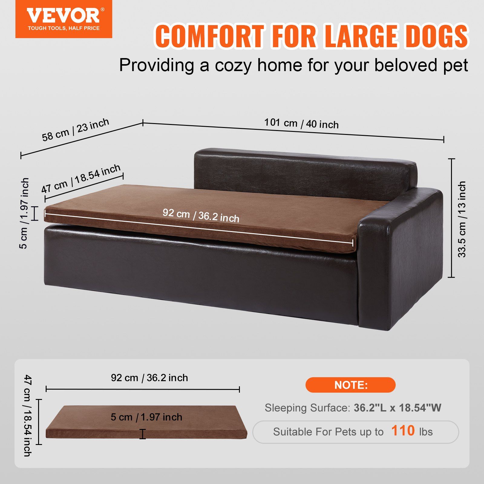 1.Suitable Size: Our pet sofa, measuring 40x23x13 inch, offers spacious comfort for pets of various sizes, from Chihuahua to golden retrievers. Crafted with sturdy solid wood and leather fabric, it's durable and ideal for multi-pet households.