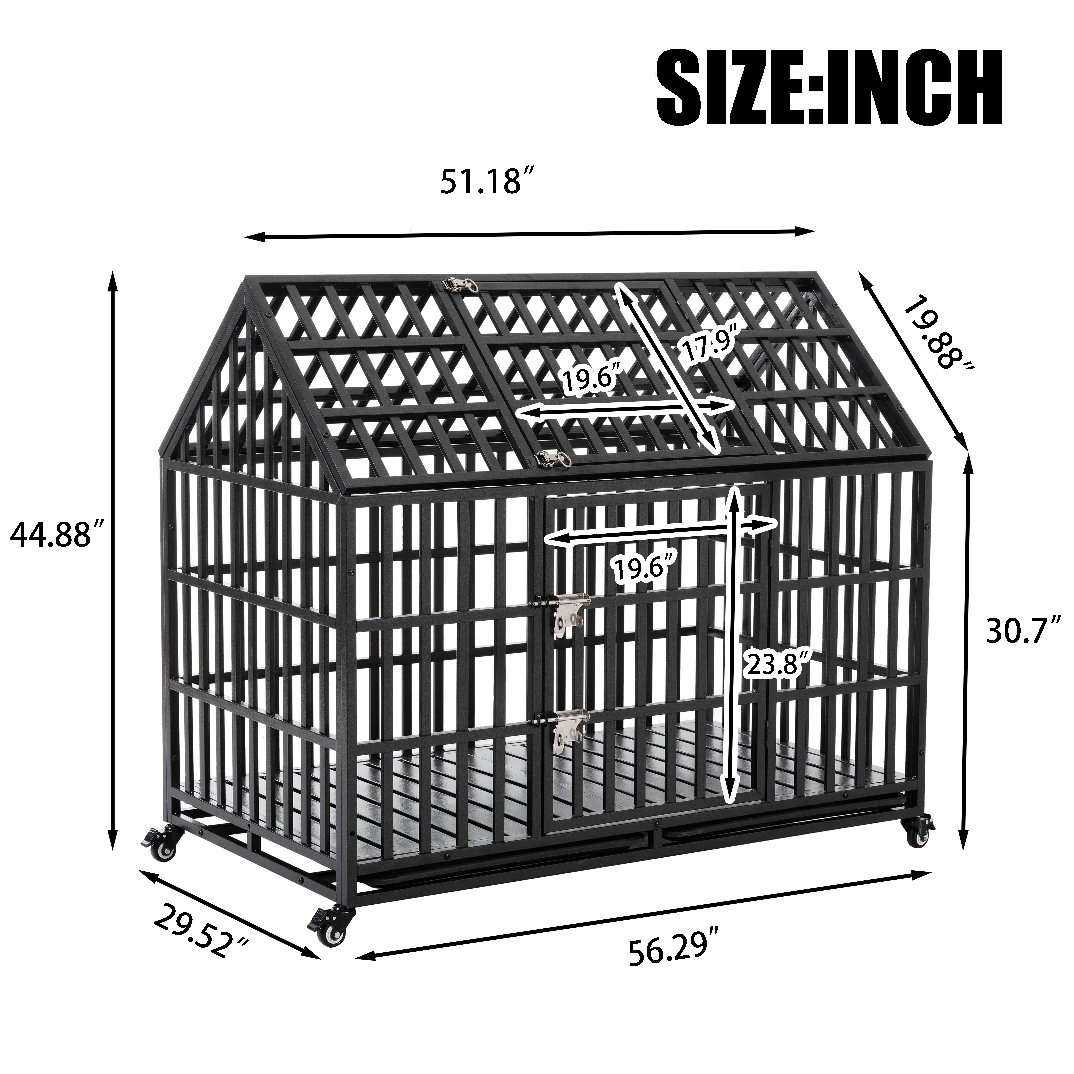 52" Heavy Duty Dog Crate Large Dog cage Strong Metal Dog Kennels and Crates for Large Dogs with 4 Lockable Wheels