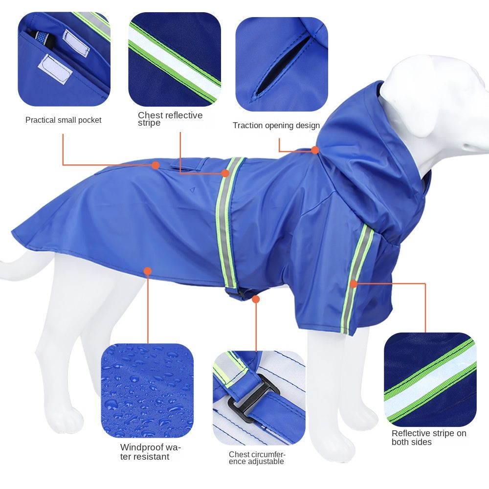 Pet raincoat for large and small dog; PU waterproof big dog raincoat; outdoor reflective dog raincoat Pet raincoat for large and small dog; PU waterproof big dog raincoat; outdoor reflective dog raincoat Pet raincoat for large and small dog; PU waterproof big dog raincoat; outdoor reflective dog raincoat