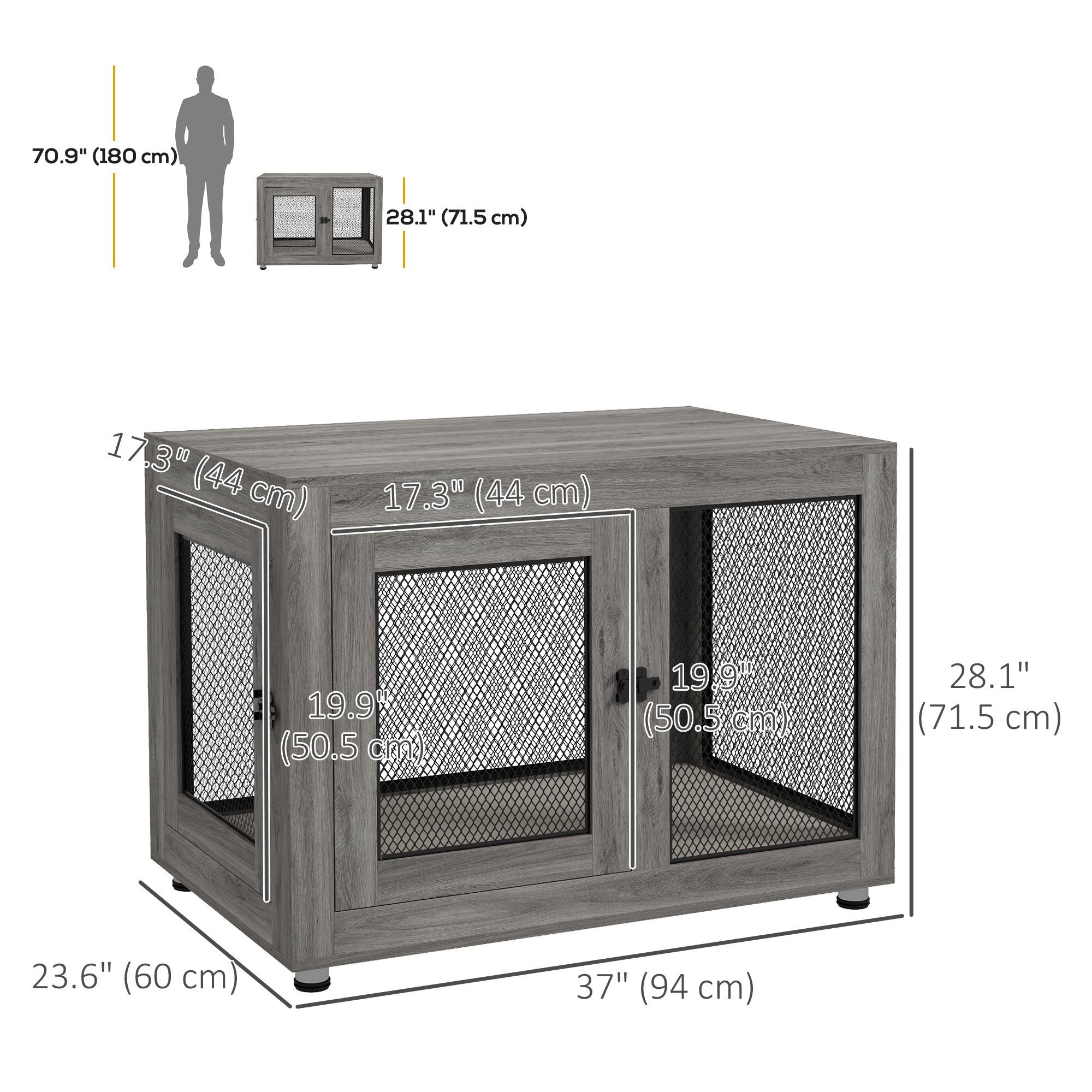 This decorative dog crate furniture contains the sleepy comfort of a pillowy surface, featuring a soft foam and a removable cover that's washable for easy cleaning. The two doors allow easy entry, and an end table design makes this dog furniture a useful home piece that both you and your pup can enjoy. The structural integrity you need for a lifetime will retain its durability and strength throughout everyday wear and tear when you make this PawHut design a part of your home.