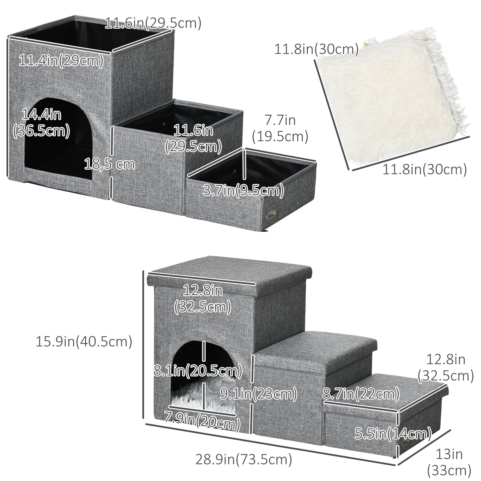 Dog Ramp with Storage Boxes and Condo, 3-step Pet Stairs for High Beds and Couch with Washable Plush Cushion